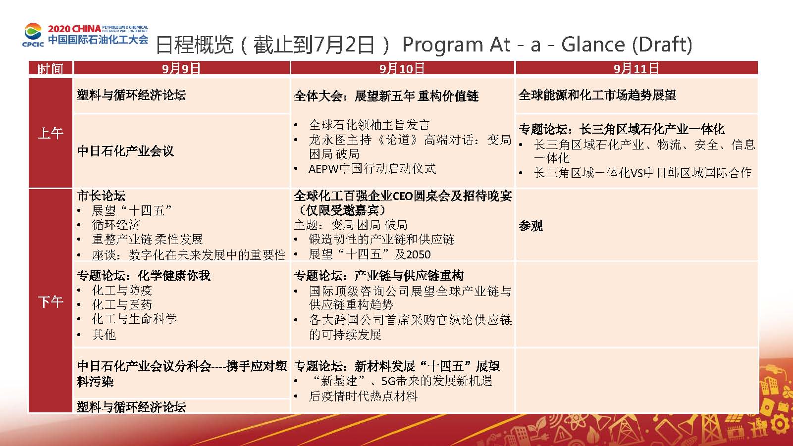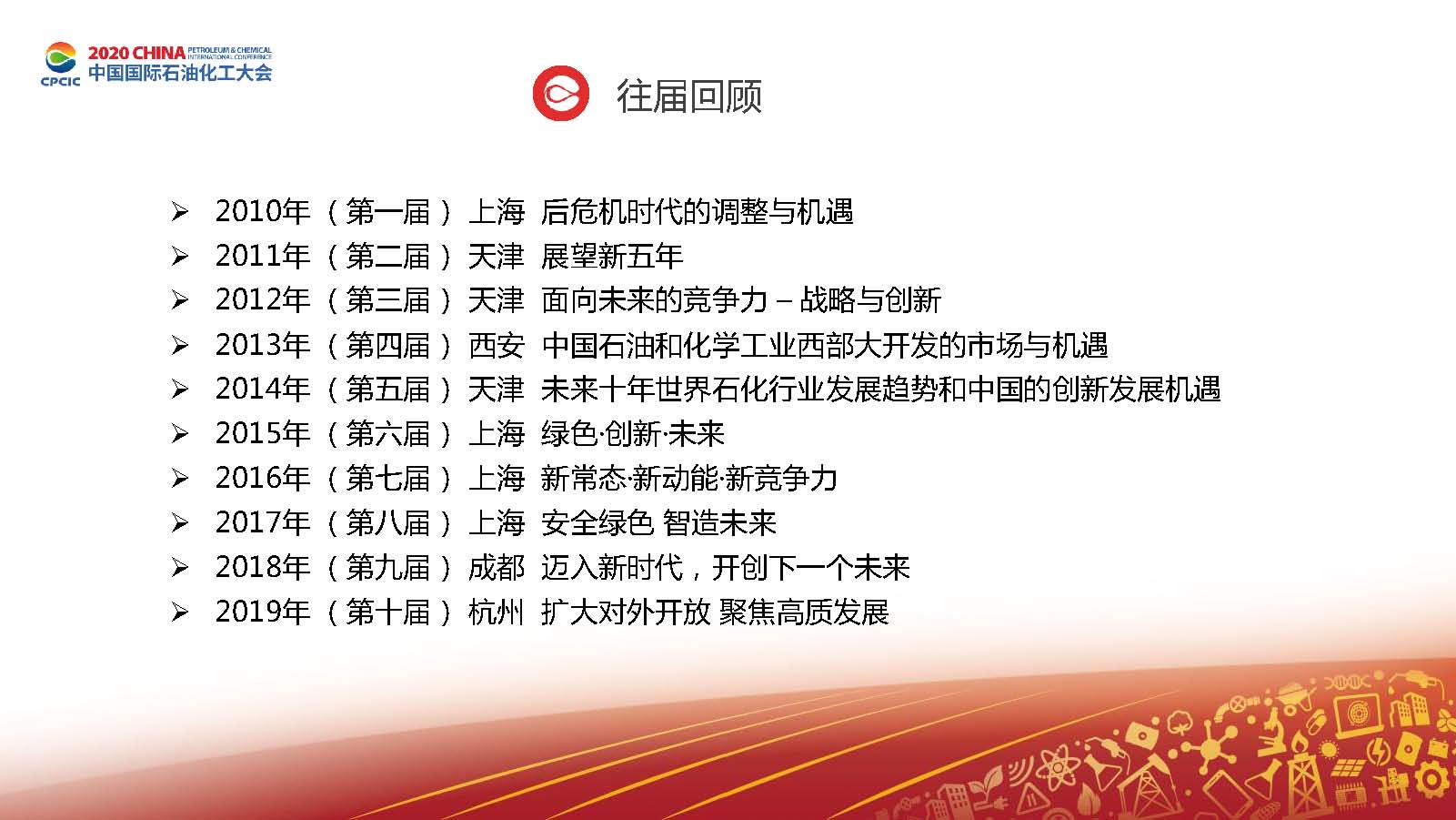 您现在的位置是:首页 > 会议活动网站首页会议活动 2020 中国国际石油化工大会(CPCIC)介绍 管理员 2020-08-19 5823 次阅读 TAG: 无标签 上一篇:Topco与阿里巴巴联手打造第十届中国石油化工装备采购峰会暨展览会(CSSOPE 2020) 下一篇:CSSOPE重磅发言人:伊朗采购团确认演讲并采购石油设备 相关文章 特别推荐 【火爆出炉】CSSOPE 2025 全球采购对接会排期表 阅读 全球氢能项目大汇总,快来点击索要 阅读 随机推荐 7000亿!西气东输瞄定“双碳”目标,为美好生活赋能 中国化学综合快讯 2020-06-21 20:01:41 俄气开发数字炼油过程控制技术 2020-04-30 15:14:20 火上浇油!钢材价格扎堆再上调,高位运行的钢材价格将... 2021-05-11 08:46:42 石油“大撤退” 2020-05-20 17:10:58 点击排行 中国石油投资建造的首艘LNG船交付使用 意大利塞班( SAIPEM)油气项目及采购计划:CSSOPE 为你解读 2019-03-14 15:21:04 集团公司召开2019年HSSE工作视频会议 2019-01-04 18:12:57 石油党员党建信息化平台交纳党费上亿元 2019-01-11 16:33:49 中国石油2022年集中采购招标公告 2022-02-11 20:43:22 标签 会议 中国石化新闻网 中国石油新闻中心 转载 原创 关注我们