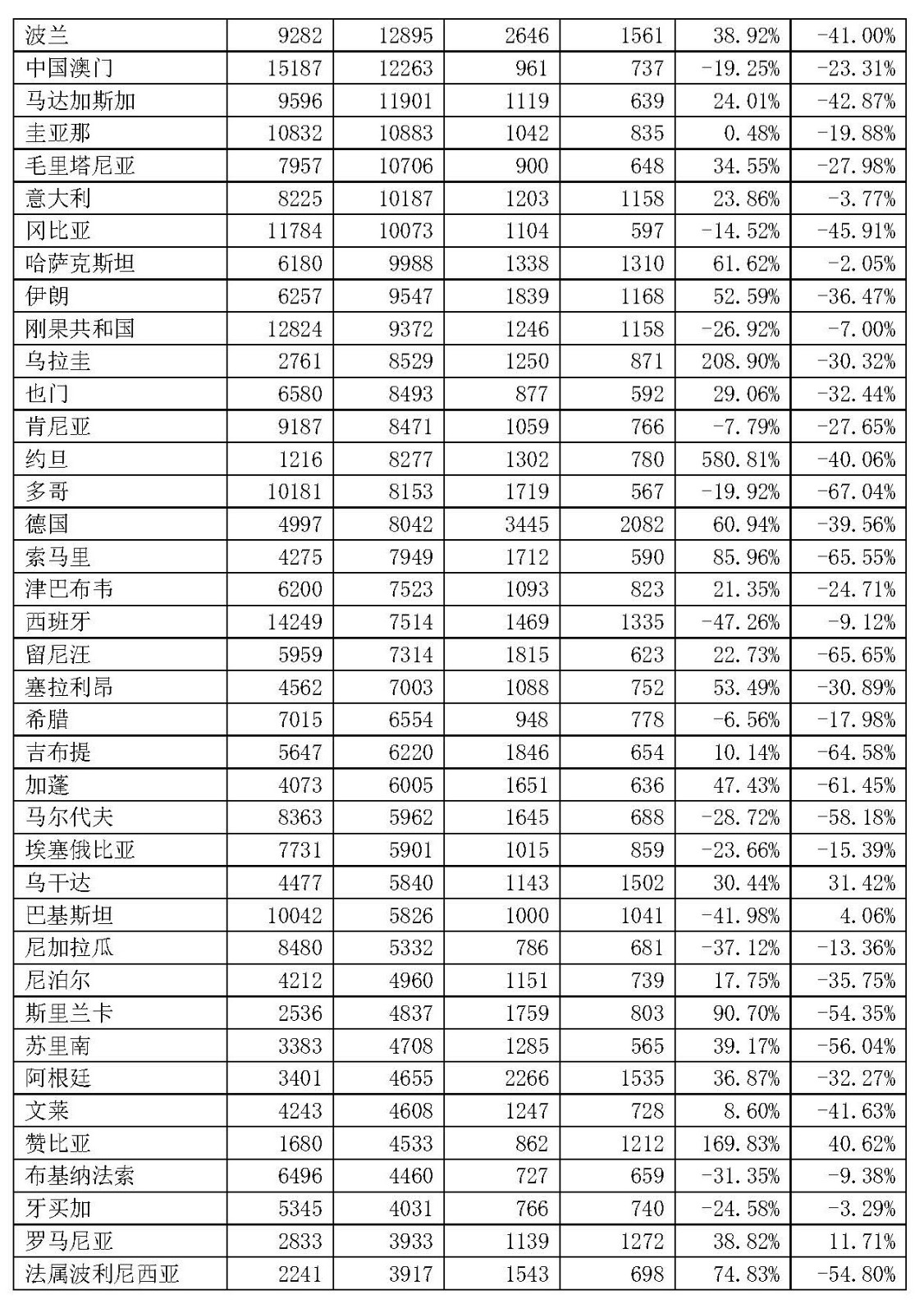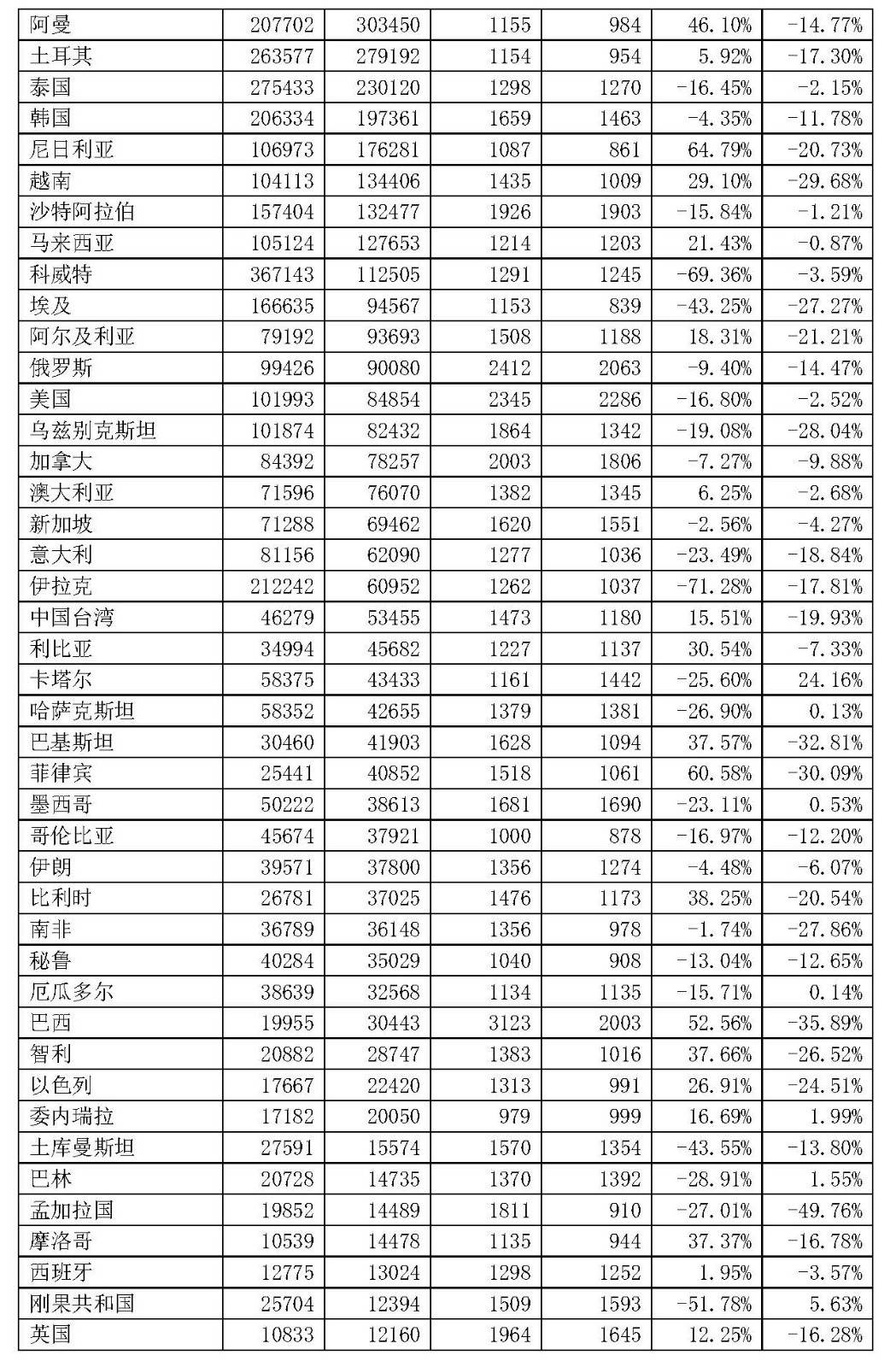 主要出口地区为阿联酋、印度尼西亚、菲律宾等。