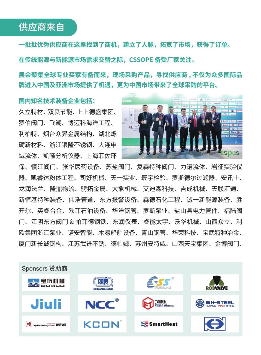 CSSOPE上海将聚焦油气上下游产业供应链,是供应商开发、采购商寻源、项目合作的专业平台。高质量的会议内容、优秀的供应商和服务商、知名的采购商和贸易商,确保了与会者高效的沟通和高质量的收益。