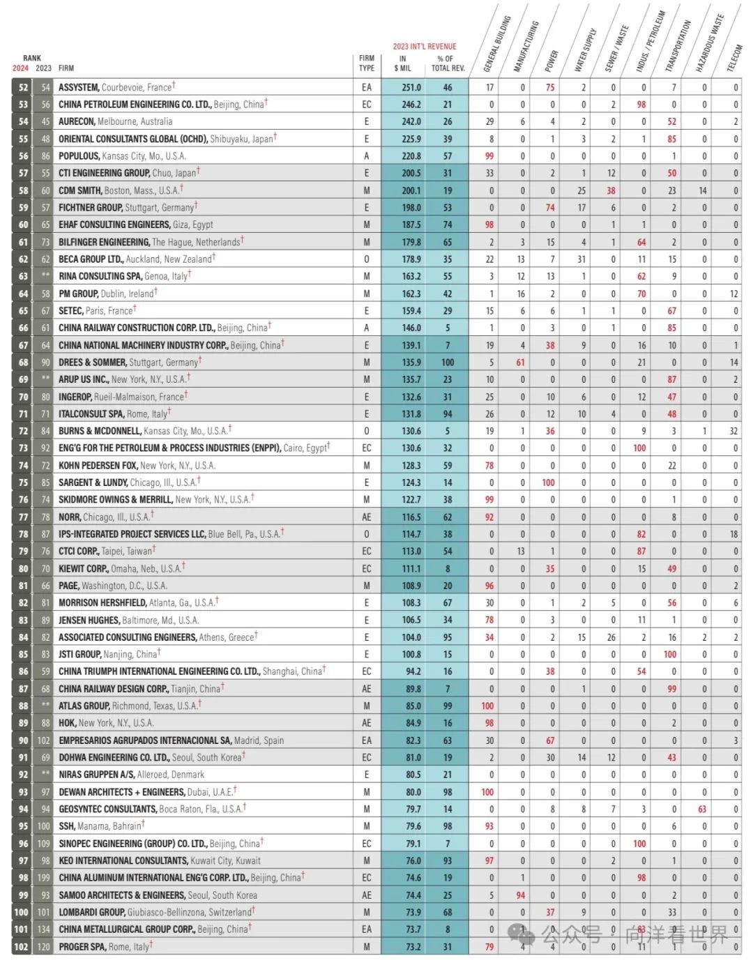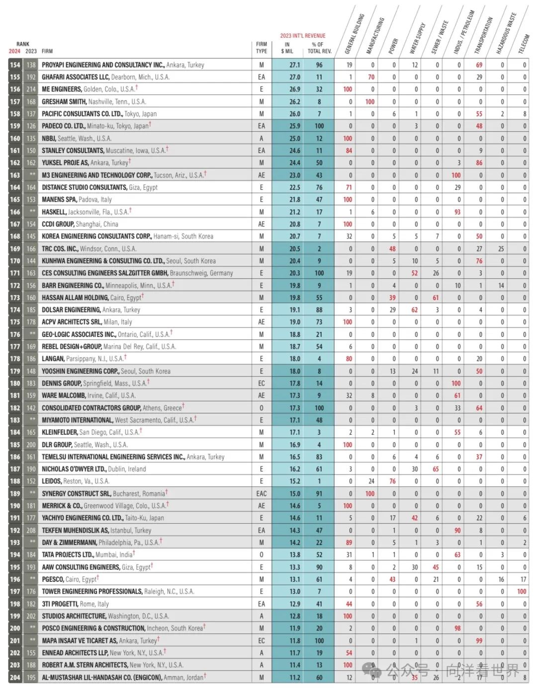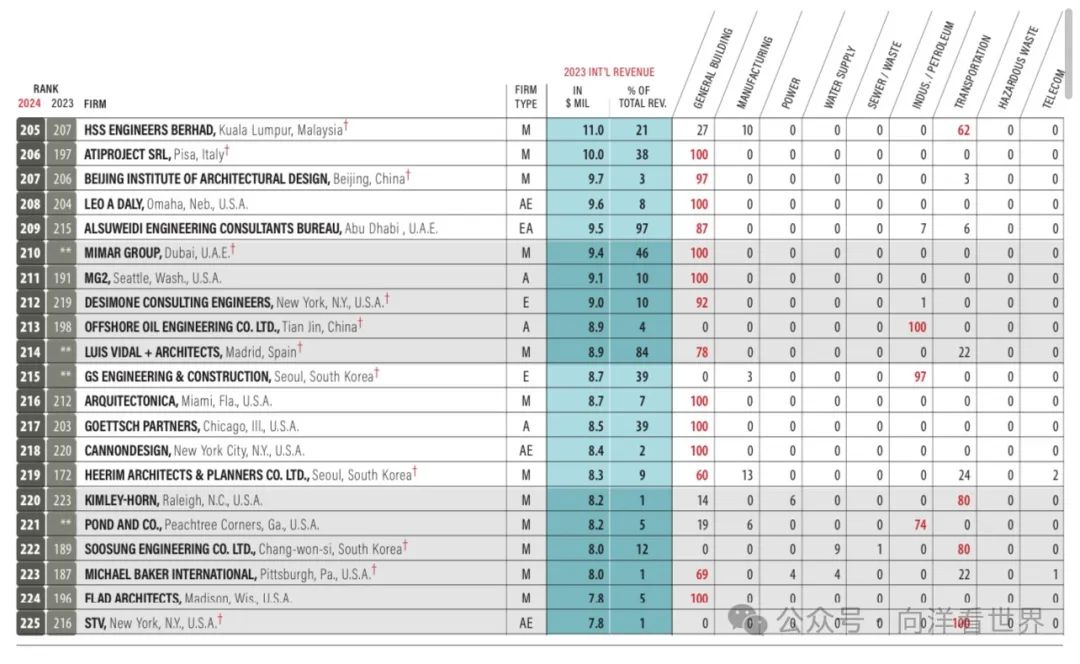 国际工程设计公司225强(The Top 225 International Design Firms)”的排名则依据设计企业在本土以外的海外工程业务总收入,重在体现设计企业的国际业务拓展实力。