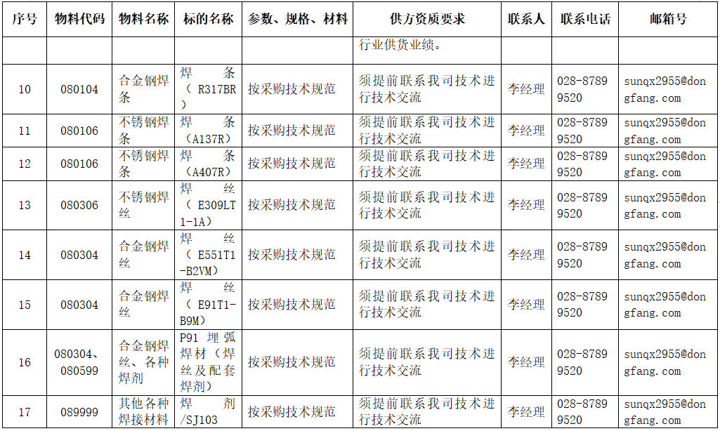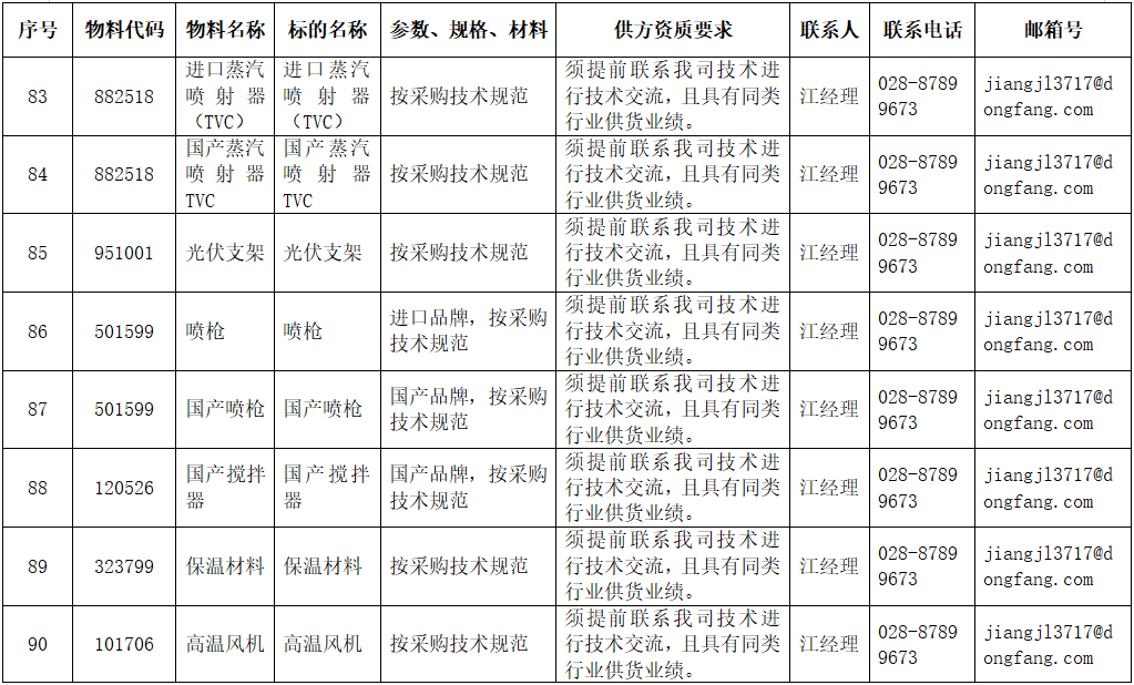 东方电气集团东方锅炉股份有限公司拟在全国范围内对附件清单中的物项进行公开寻源,欢迎有意向和符合条件的供应商积极参与报名。