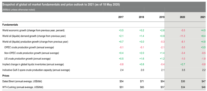 基本判断1:第二波疫情相对可控,各国并未采取强力封锁措施,减产和需求复苏,2020年下半年石油市场出现供应短缺,油价温和复苏,但相对较高的库存水平和OPEC的闲置产能抑制价格上涨。基本判断2:2021年,世界石油需求同比增加840万桶/日,累计消化过剩库存3亿桶。2021年年终,布伦特突破50美元/桶,2021年美国原油产量较2020年1季度减少340万桶/日。基本判断3:2020年全球经济增速为-5.5%,2021年回升至4.3%。