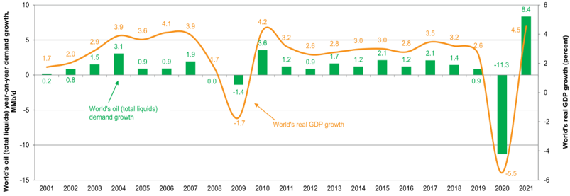 首先,疫情加剧了经济的衰退,使全球石油需求在2020年同比减少1130万桶/日,全球各个地区都出现了需求的大幅萎缩,特别是美国和欧洲。但多项数据表明,石油需求最差的时刻已经过去,随着中国、欧洲乃至美国的复工复产,交通运输等石油消费的主要部门正在恢复正常运转,带动石油需求复苏。预计2021年需求将回升840万桶/日,但仍然难以恢复到2019年的水平。