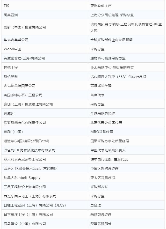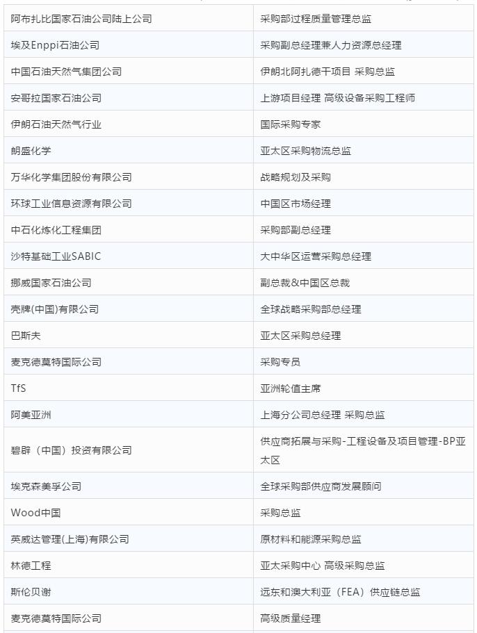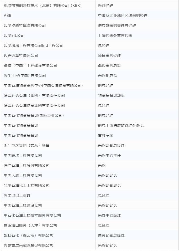 第十一届中国石油化工装备采购国际峰会暨展览会(CSSOPE 2021)采购嘉宾名单: