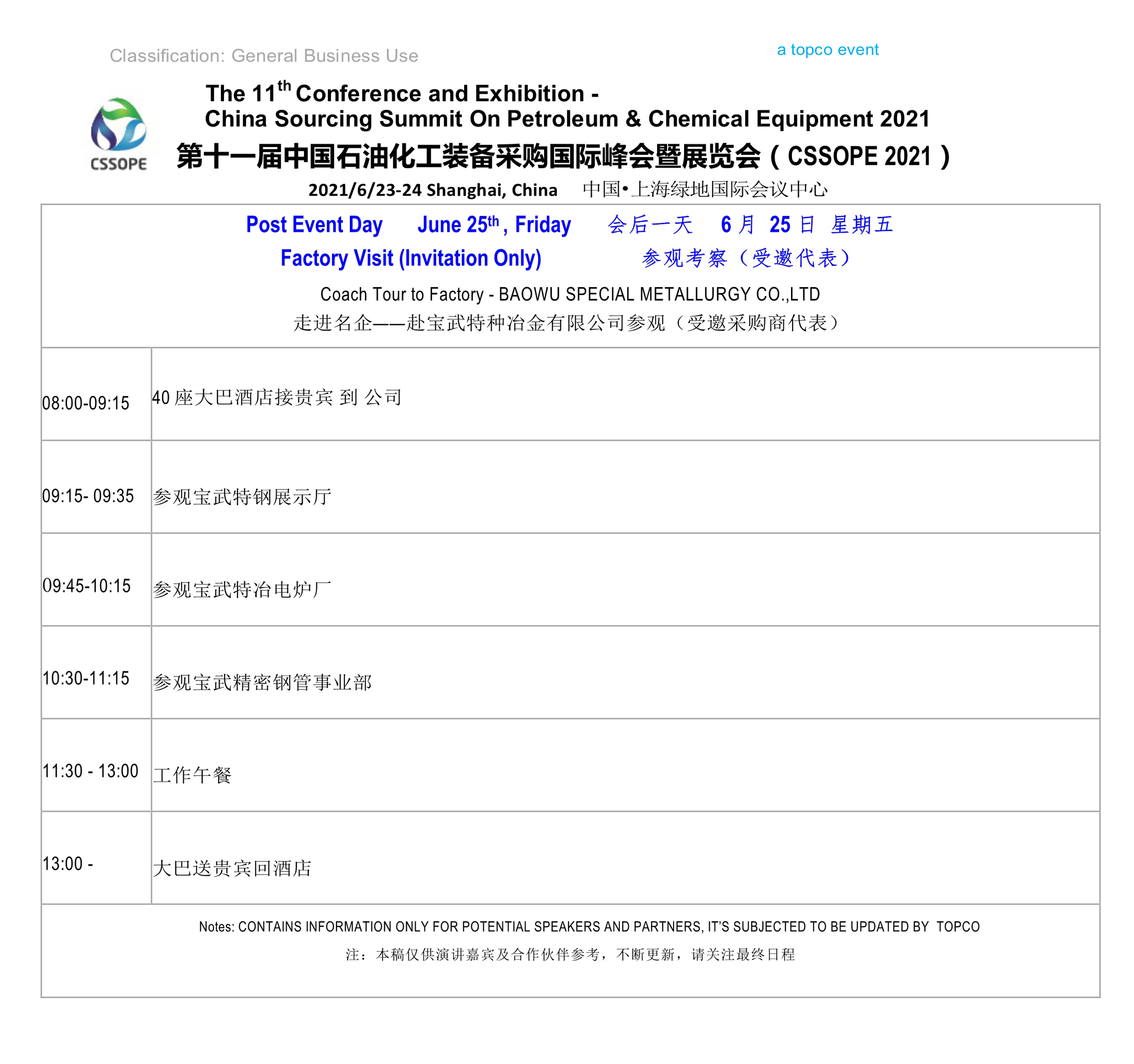 会后一天 6月25日 星期五 参观工厂(仅限采购商参与)