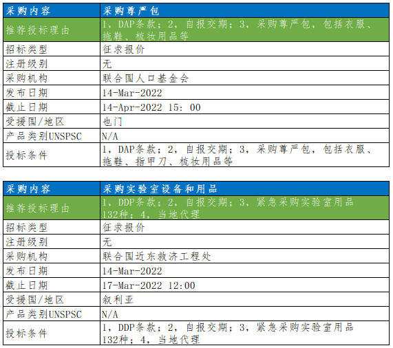 最新联合国采购信息推送